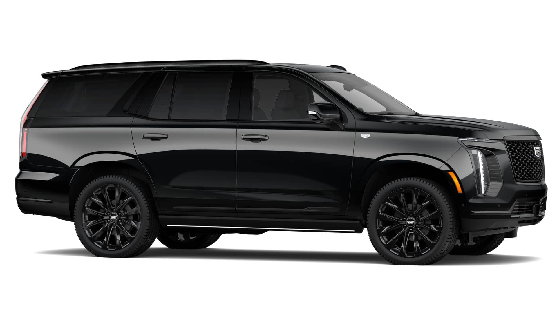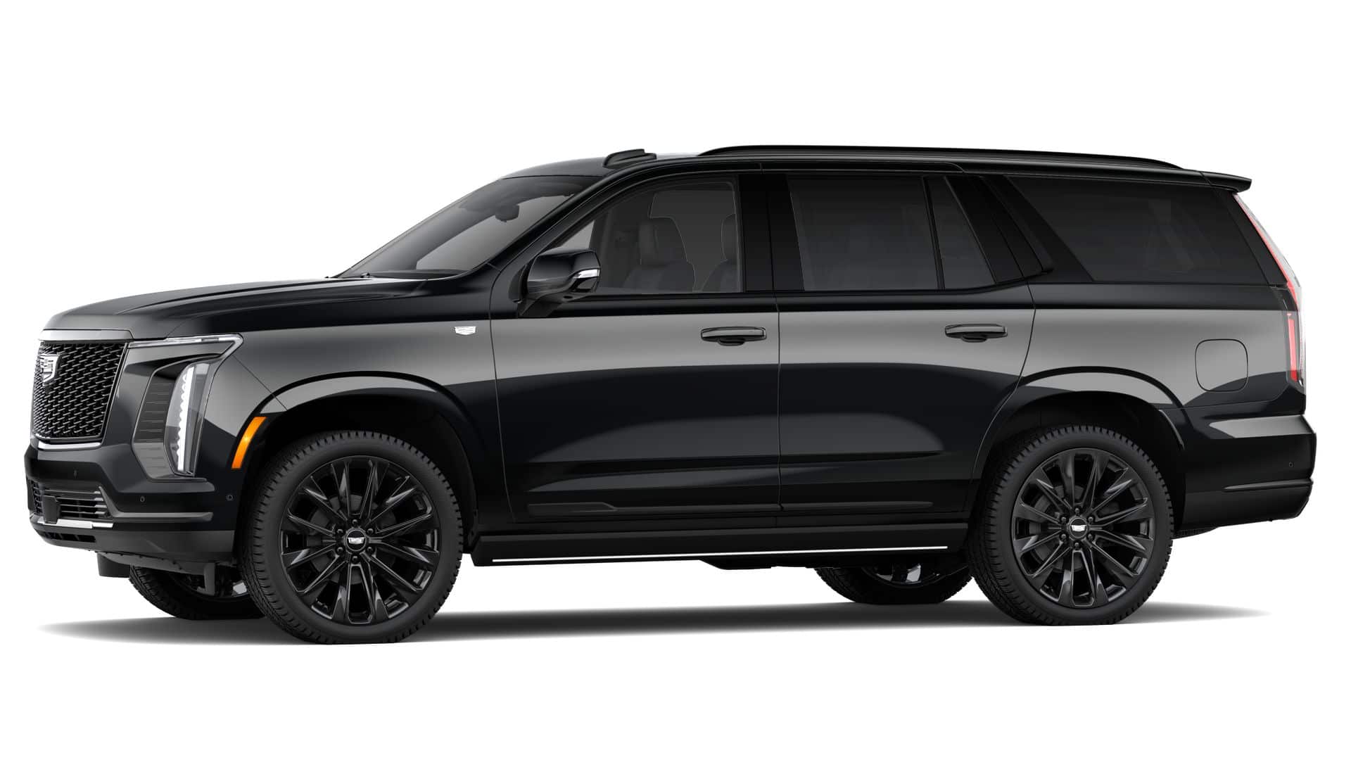 Equipped with Onyx Package (24 Black Alloy Wheels, Black Illuminated Cadillac Emblem, Gloss Black Escalade Nameplate, and Wheels: 24 Transit), Touring Package (Air Ride Adaptive Suspension, Power Open/Close Doors, and Soft Closing Front and Rear Doors), 2-Presets Memory For Driver Seat Adjuster, 2-Speed Active Transfer Case, 3.23 Axle Ratio, 3rd row seats: split-bench, 4-Way Power Driver Lumbar Seat Adjuster, 4-Way Power Front Passenger Lumbar Seat Adjuster, 4-Wheel Disc Brakes, 8-Way Power Driver Seat Adjuster, 8-Way Power Front Passenger Seat Adjuster, ABS brakes, Active Noise Cancellation, Adaptive suspension, Air Conditioning, AKG Studio Reference 38-Speaker Audio System, Alloy wheels, AM/FM radio: SiriusXM with 360L, Apple CarPlay/Android Auto, Audio memory, Auto High-beam Headlights, Auto tilt-away steering wheel, Auto-dimming door mirrors, Auto-dimming Rear-View mirror, Automatic temperature control, Blind Zone Steering Assist with Trailering, Brake assist, Bumpers: body-color, Compass, Console Refrigerator with Covered Storage, Delay-off headlights, Door Lock and Latch S