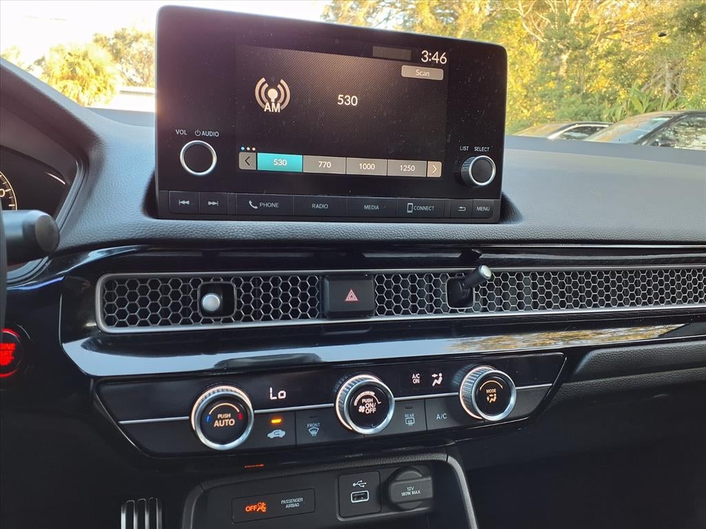 Equipped with 18 Alloy Wheels, 4-Wheel Disc Brakes, 8 Speakers, ABS brakes, Adaptive Cruise Control: Adaptive Cruise Control (ACC) with Low-Speed Follow, Air Conditioning, Alloy wheels, AM/FM radio, Apple CarPlay/Android Auto, Auto High-beam Headlights, Automatic temperature control, Brake assist, Bumpers: body-color, Delay-off headlights, Driver door bin, Driver vanity mirror, Dual front impact airbags, Dual front side impact airbags, Electronic Stability Control, Emergency communication system: HondaLink, Exterior Parking Camera Rear, Fabric Seating Surfaces, Four wheel independent suspension, Front anti-roll bar, Front Bucket Seats, Front Center Armrest, Front reading lights, Fully automatic headlights, Illuminated entry, Knee airbag, Lane departure: Lane Keeping Assist System (LKAS) active, Leather Shift Knob, Leather steering wheel, Low tire pressure warning, Occupant sensing airbag, Outside temperature display, Overhead airbag, Panic alarm, Passenger door bin, Passenger vanity mirror, Power door mirrors, Power steering, Power windows, Radio data system, Radio: 180-Watt Audio System, Rear anti-roll bar, Rear side impact airbag, Rear window defroster, Rear window wip