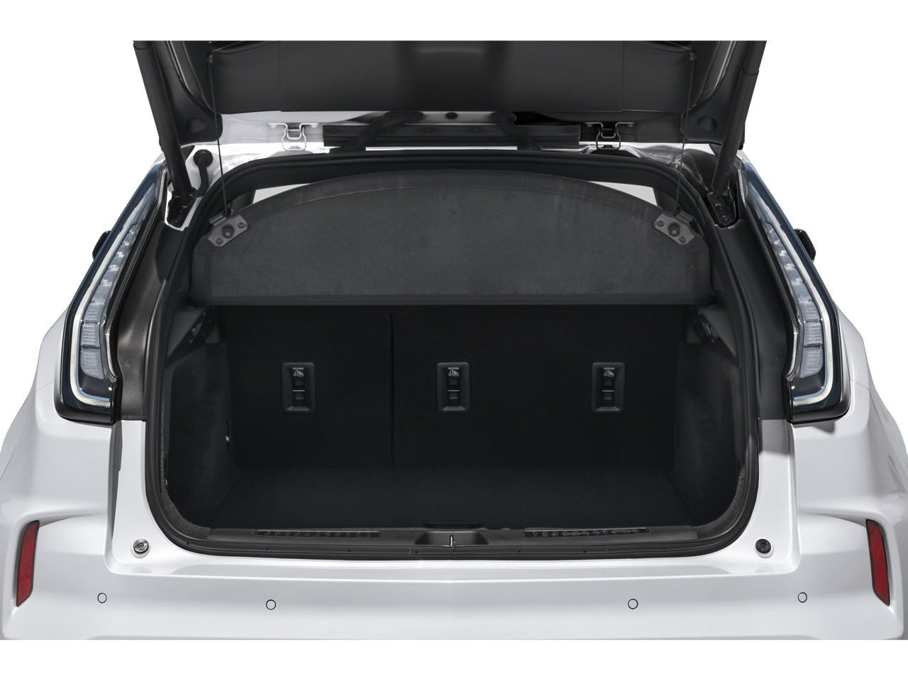 - Opens or closes when the system senses the key fob and the driver extends their foot under the left-hand side of the rear bumper over an image of the Cadillac Crest projected under the vehicle