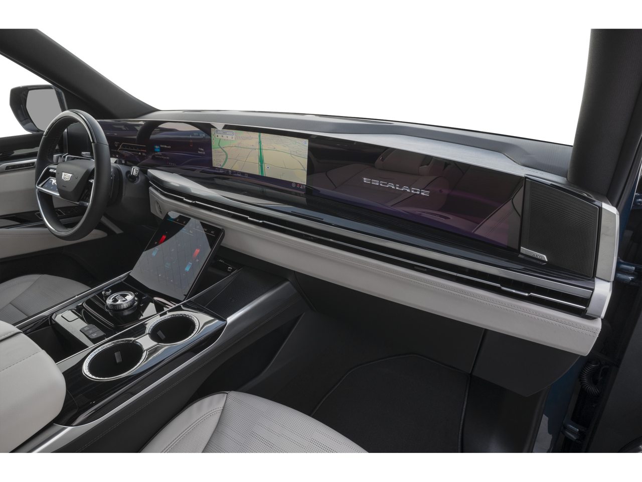 Equipped with Onyx Package (24 Black Alloy Wheels, Black Illuminated Cadillac Emblem, Gloss Black Escalade Nameplate, and Wheels: 24 Transit), Preferred Equipment Group 1SH (2-Speed Active Transfer Case, Active Noise Cancellation, AKG Studio Reference 38-Speaker Audio System, Blind Zone Steering Assist with Trailering, Door Lock and Latch Shields, Driver Seat Power Bolster, Electronic Limited-Slip Differential, Front Passenger Seat Power Bolster, Glass Breakage Sensor, Heated and Ventilated Driver and Front Passenger Seats, Hitch Guidance with Hitch View, Illuminating Front and Rear Sill Plates, Integrated Trailer Brake Controller, Magnetic Ri
